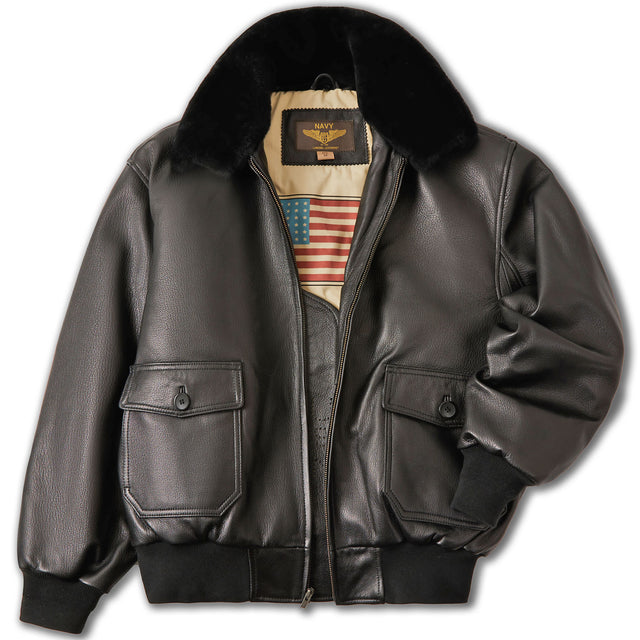 Landing Leathers Men Navy G-1 Leather Flight Bomber Jacket
