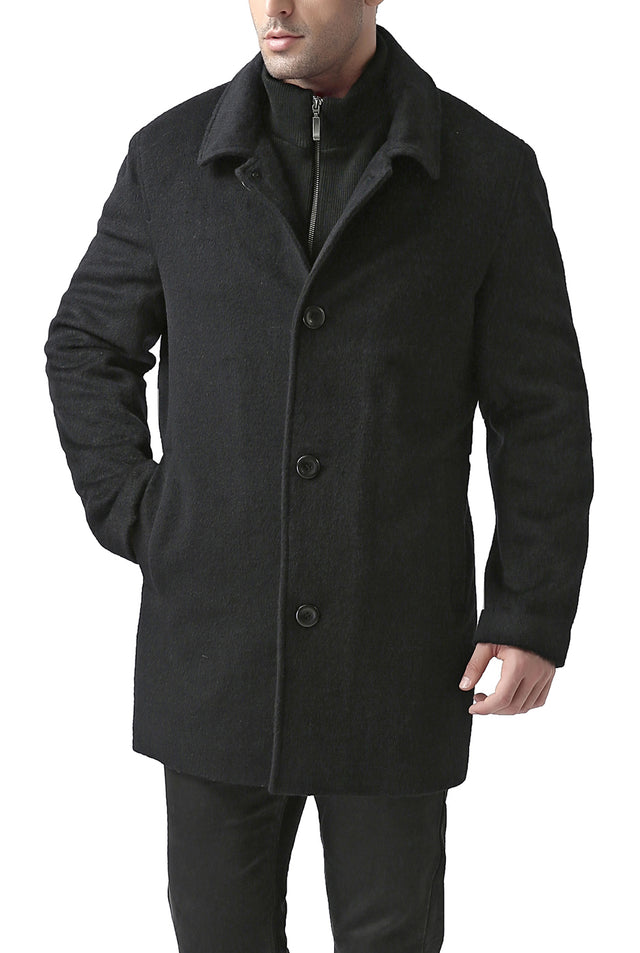 BGSD Men Adam Herringbone Wool Car Coat with Removable Bib