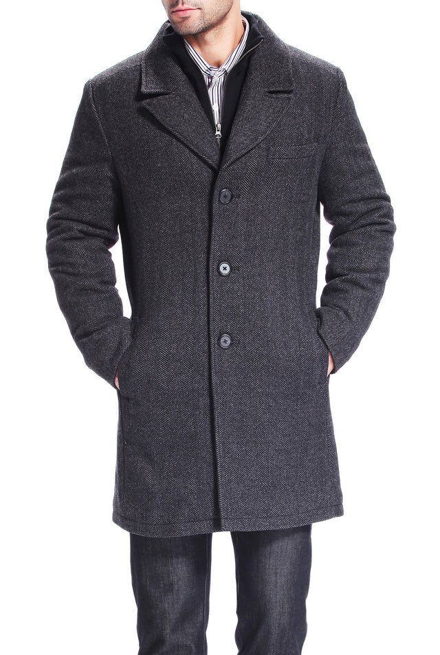BGSD Men Leon Herringbone Wool Blend Coat with Removable Bib