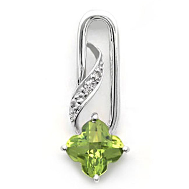 18k White Gold Clover Shape Peridot and Diamond Pendant