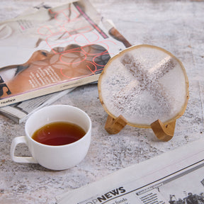 Large Natural Brazilian Agate Drink Coaster with Wood Holder - White