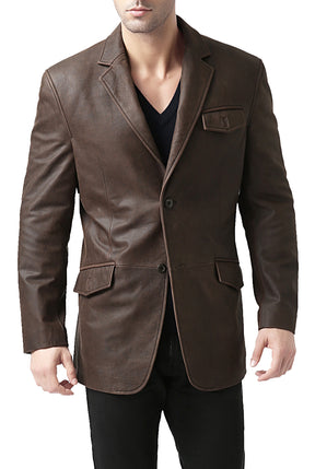 BGSD Men Two-Button Cowhide Leather Blazer
