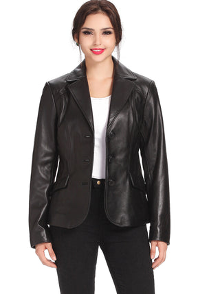 BGSD Women Tammy 3-Button Lambskin Leather Blazer