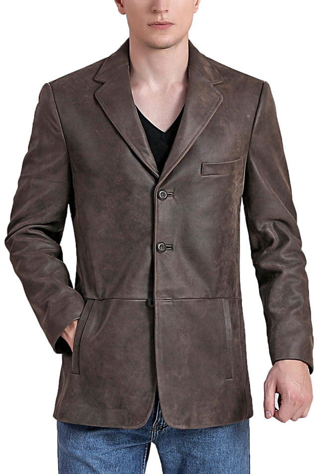 BGSD Monogram Collection Men 2-Button New Zealand Lambskin Leather Blazer