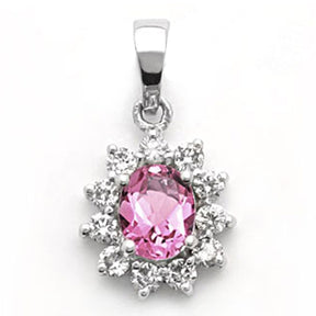 This elegant 14k white gold pendant features a rosy pink oval sapphire accented with dazzling round diamonds. Add a touch of pink to any outfit with this softly feminine pendant. Sapphire, the birthstone for September, makes this pendant the perfect gift for that special someone.