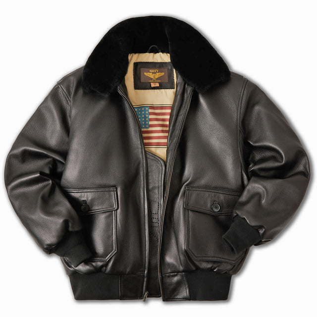 Landing Leathers Men Navy G-1 Leather Flight Bomber Jacket