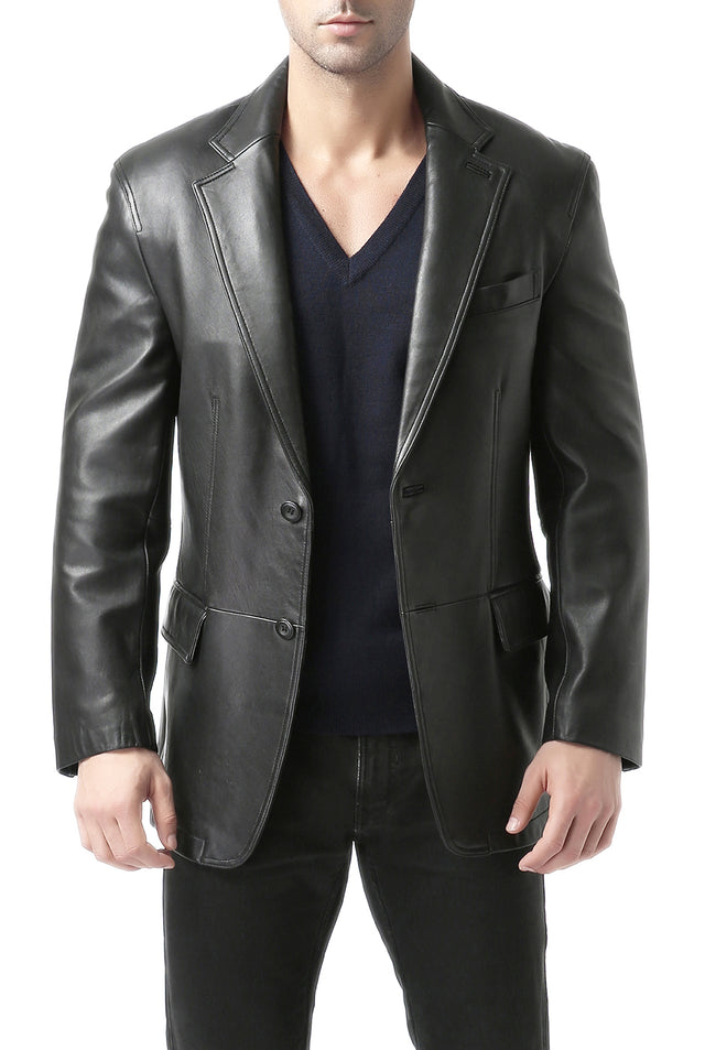 BGSD Men Richard Classic Two-Button Lambskin Leather Blazer