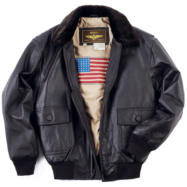 Landing Leathers Navy Men G-1 Goatskin Leather Flight Bomber Jacket