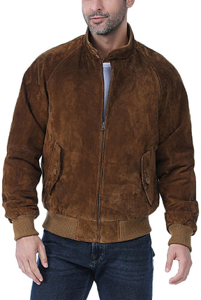The ultimate value in an updated and stylized version of the WWII bomber jacket. Made of our premium suede leather for a soft feel. Raglan sleeves for a good fit on a wide range of body shapes. A zip-out insulated polyester filling liner for added warmth when temperature drops makes this bomber a true three season jacket.