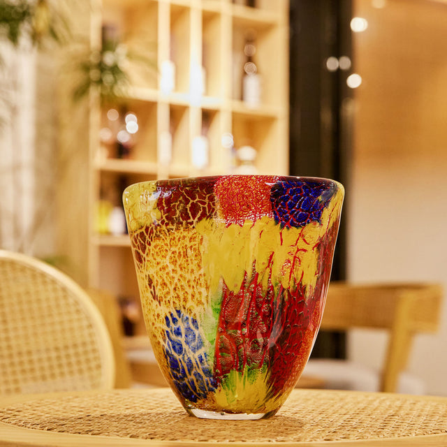 Hand Blown Laine Art Glass Vase - Gold & Red Ombre 10-12.5 inch tall