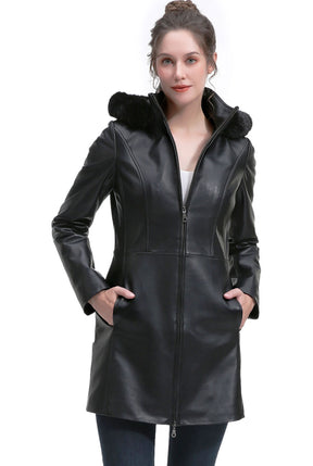 Prepare for winter with confidence, as the zip-out insulated liner adds an extra layer of warmth. This hooded parka is not just a fashion statement but also a functional choice for colder days. Embrace the modernity and sophistication of this New Zealand lambskin leather parka coat, a versatile addition to your outerwear collection.