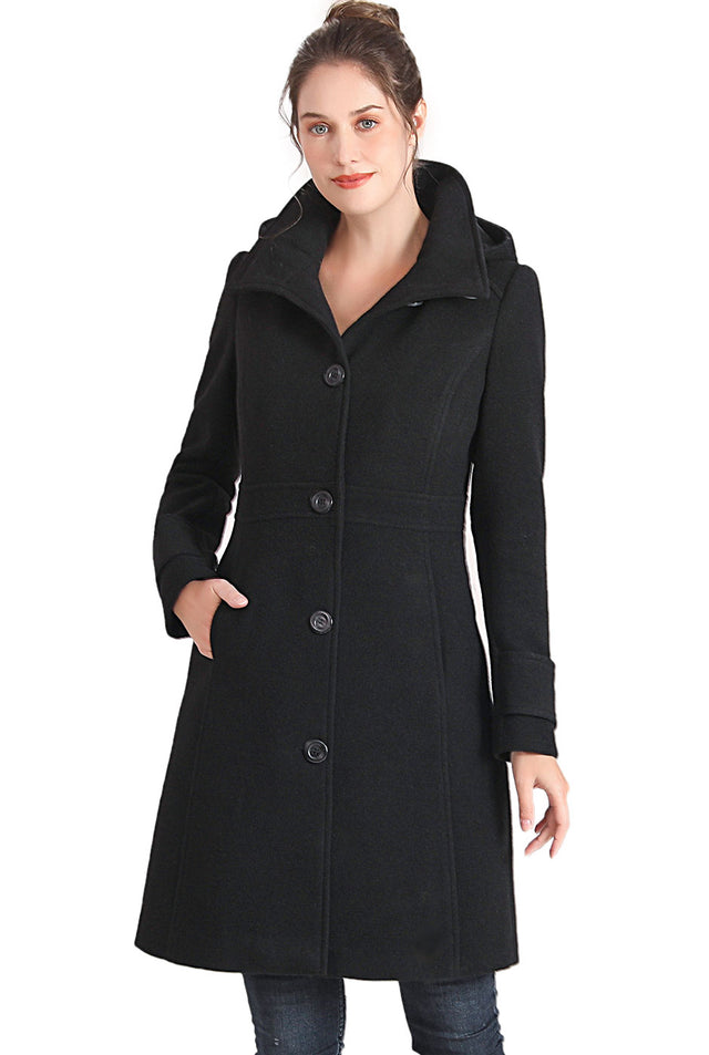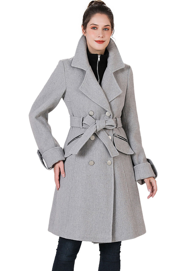 BGSD Women Mel Wool Belted Wrap Trench Coat with Removable Bib